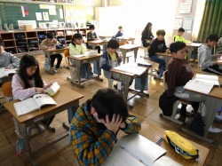 4年生は、社会科の授業で、「どうして名古屋市は、有松・鳴海しぼりが盛んになったのか」を考えました。教科書をそれぞれが読んでいました。