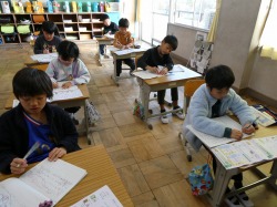 6年生は、書写の授業で、書写練習帳に取り組みました。