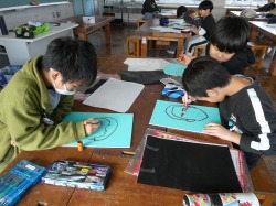 5年生は、図画工作科の授業で、「ミラクル!ミラーワールド」に取り組みました。富士山や雪だるまなど、思い思いの作品を作っていました。完成が楽しみです。