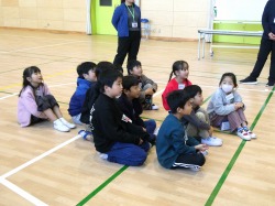 「チャチャマンボ」の合奏をしました。歌、けん盤ハーモニカ、マラカス等、木琴のパートに分かれて、心を一つにして演奏していました。歌も音色も元気で素敵でした。