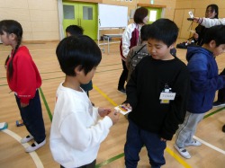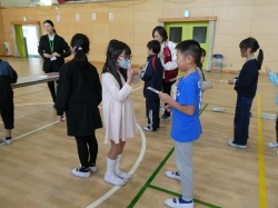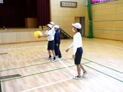 5年生は、体育科の授業で、「ソフトバレー」を行いました。チームで声をかけながら、楽しそうに試合をしていました。