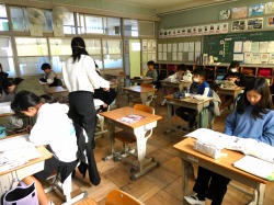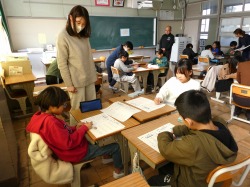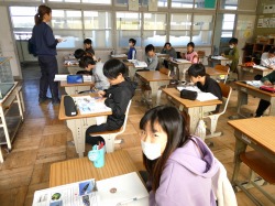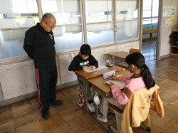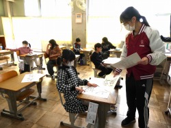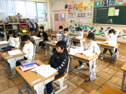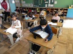 3年生は、書写の授業で、書き初めで書く字のお手本を配付していました。「どれにしようかなあ」という楽しみにしている声が上がっていました。