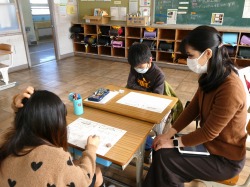 2年生は、国語科の授業で、作文が書けた児童は、先生に見てもらい、合格した児童は、漢字プリントに取り組みました。