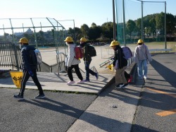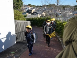 今日の登校の様子です。今日も、新班長・副班長さんが、安全に気を付けて、班員を学校まで連れてきてくれました。