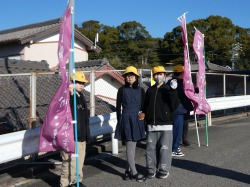令和7年度後期総務委員と令和8年度前期総務委員が、あいさつごんごん運動を行いました。総務委員の元気な挨拶に、登校してくる児童も笑顔で挨拶を返していました。