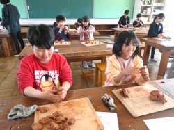 2年生は、図画工作科の授業で、「思い出をかたちに」に取り組みました。自分が思い出に残っている出来事を粘土で表しました。