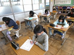 3年生は、算数科の授業で、3年生の学習のまとめプリントに取り組みました。