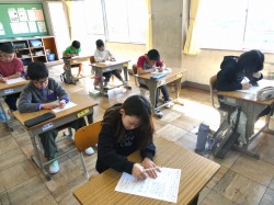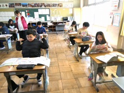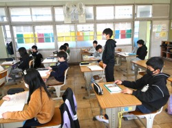 5年生は、家庭科の授業で、掃除についての学習内容を復習した後、テストに取り組みました。