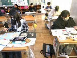6年生は、図画工作科の授業で、版画と作品を入れる袋のデザイン制作に取り組みました。