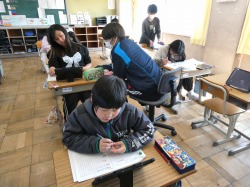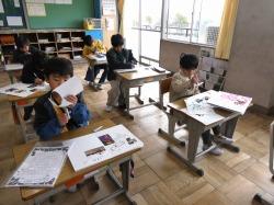 4年生は、社会科の授業で、ペアで問題を出し合いながら、都道府県名を覚えていました。