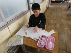 5年生は、算数の「もうすぐ6年生」や5年生のまとめの漢字プリントなどを、自分のペースでどんどん進めていました。