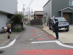 交通指導員さんが、温かい声かけをしながら、交通指導をしてくださいました。おかげで、今日も、子どもたちが元気に登校することができました。
