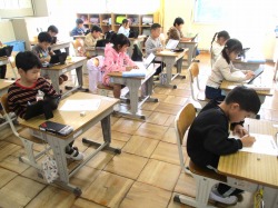 4年生は、国語科の授業で、「クラスみんなで決めるには」を学習しました。決め方やどんなルールが必要かを考え、プリントに書いていました。