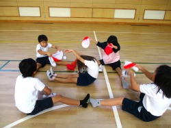 3年生は、体育科の授業で、表現運動を行いました。「クッキングよういどん」をテーマに、グループに分かれて、「鍋の中で踊るめん」「フライパンであっちっち」「湯気」など、料理に関する様子を全身をつかって表現していました。