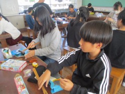 6年生は、図画工作科の授業で、テープカッターを作りました。完成した児童もいました。どの作品もとても素敵でした!