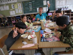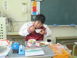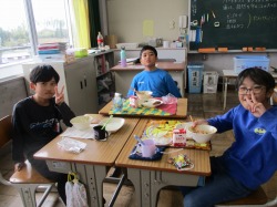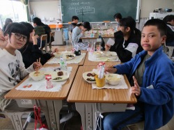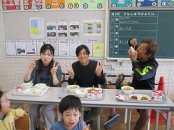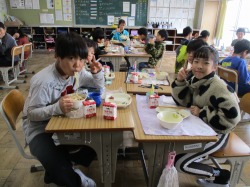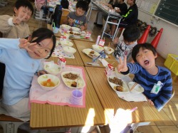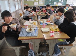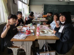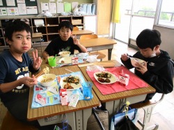 給食の様子です。みんな「おいしい!」と言って食べていました。いつもおいしい給食を作っていただき、ありがとうございます。