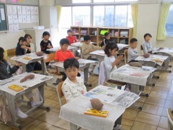 1年生は、生活科の授業で、自分たちで収穫したさつまいもの絵を描きました。大きく立派に描けたようです。
