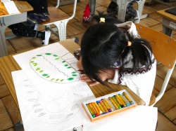 1年生は、図画工作科の授業で、「おはなしだいすき」を学習しました。画用紙に絵をクレヨンで描き、背景を絵の具で塗って完成させました。とても素敵な作品が出来ました。