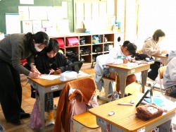 1年生は、国語科の授業で、漢字ドリルに取り組んでいました。一画一画丁寧に書いていました。