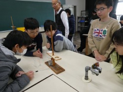 5年生は、理科の授業で、ろ過の学習しました。ろ過の実験に向けてろ過の仕方を練習しました。