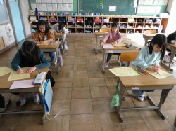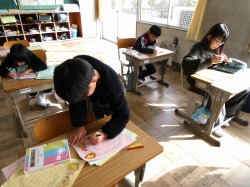 3年生は、いつもお世話になっている学校応援団の方にお礼の手紙を書きました。感謝の気持ちを込めて、真剣に書いていました。