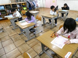 5年生は、社会科の授業で、「たしかめよう」のテストに取り組みました。
