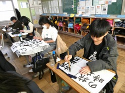 4年生は、書写の授業で、「平和」を書きました。お手本を見ながら、一画一画丁寧に書いていました。