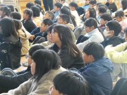 最初に担任の先生から、文字職人の杉浦誠司さんのお話がありました。素敵な言葉を紹介していただきました。興味のある方は、ぜひ調べてみてください。次に、総務委員から「整理整頓」について、児童会長から「卒業式・修了式に向けての心構え」についてのお話がありました。最後に今月の歌を歌いました。
