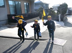今日の登校の様子です。今日も、新班長・副班長さんが、安全に気を付けて、班員を学校まで連れてきてくれました。