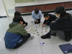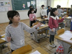 1年生は、学級活動の授業で、3月9日に行うペア遊びを何にするかを話し合いました。先生と一緒にルールも真剣に考えていました。