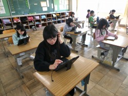 3年生は、国語科の授業で、タブレット端末を使って、「漢字の意味」のドリルに取り組んでいました。