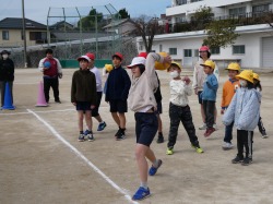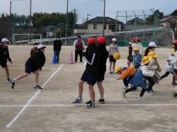 6年生は、1年生と一緒に最後のペア遊びをしました。ドッジボールをしていました。1年生を気遣う優しいお兄さん、お姉さんでした。