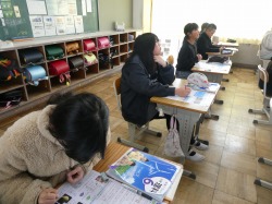 4年生は、社会科の授業で、47都道府県を覚えていました。友達と問題を出し合いながら、楽しく学習していました。