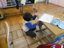 2年生は、一年間の振り返りを行いました。この一年間でがんばったことをプリントにまとめました。終わった児童は、書写練習帳に取り組みました。