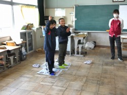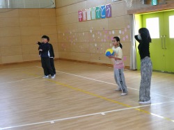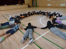 4年生は、体育館で、お楽しみ会を行いました。ドッジボール(ドッジビー)や大根ぬきぬきゲームなどをしていました。