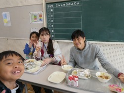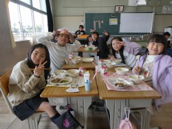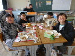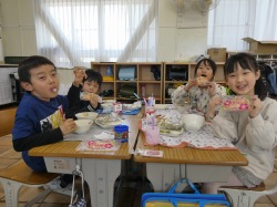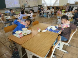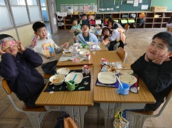 今日の献立は、ご飯、牛乳、さんまの銀紙焼き、きゅうりの酢の物、関東煮、お祝いクレープでした。子どもたちは、お祝いクレープが出て、うれしそうでした。いつもおいしい給食を作ってくださり、ありがとうございます。