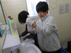 大掃除の様子です。一年間お世話になった教室や廊下、靴箱、トイレなどを隅々まできれいにしました。