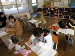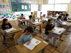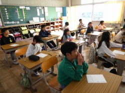1年生は、国語科の授業で、「たぬきの糸車」の音読をしていました。