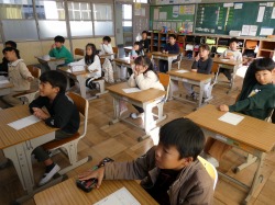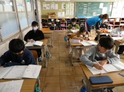 4年生は、算数科の授業で、分数のかけ算・わり算の問題をどんどん解いていました。