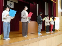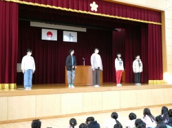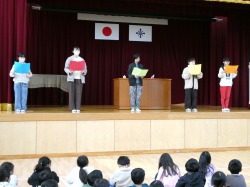 12月4日から12月10日まで「人権週間」です。校長先生からは、「普段何気なく使っている言葉を見直し、大切に使っていこう」というお話がありました。その話の中で、総務委員が、北原白秋作の「ひとつのことば」を群読してくれました。とても上手でした。総務委員、児童会長からも「人権週間」の取組についてのお話がありました。相手のことを思いやる優しい言葉、聞いていて気持ちのよい美しい言葉があふれる有脇小学校であってほしいと願います。また、総務委員が、「友達と仲良く過ごそうキャンペーン」を行っています。「おはよう」「ありがとう」「ごめんね」「いっしょにあそぼう」など、優しい声かけを友達、先生、おうちの人にたくさんしましょう!!