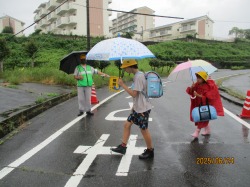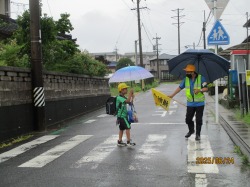 今日は、けっこう雨が降っていました。雨が降っているにもかかわらず、スクールガードのみなさんが、笑顔で子どもたちを見守ってくださっています。いつもありがとうございます。