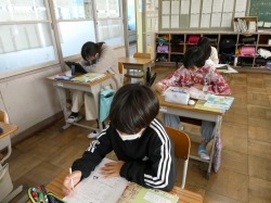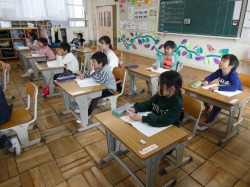 1年生は、国語科の授業で、「しらせたいな 見せたいな」を学習しました。自分が見つけたイチョウやどんぐりなどの特徴を知らせる文章を知多の友に書きました。