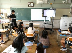 5年生は、算数科の授業で、「平均」を学習しました。1週間の平均を求めるときに「0」の日の日数も入れて計算するか否かを話し合い、理由を発表していました。