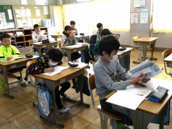 6年生は、社会科の授業で、作業帳、プリント集、タブレット端末のドリルを各自行い、復習をしました。どの児童も集中して取り組んでいました。