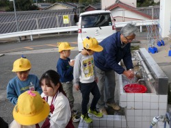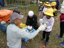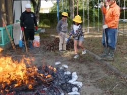 地域の方が、来てくださり、焼きいもを行いました。朝早くに来校し、すべて準備してくださいました。本当にありがとございました。子どもたちは、大喜びでいもを包んだり、たき火にいもを入れたりしました。