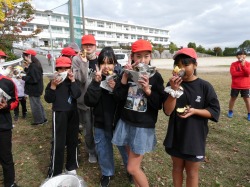 4時間目に、1年生が6年生に焼きいもを渡して、食べてもらいました。6年生も、「おいしい!」と言いながら、大きなやきいもを完食していました。地域の皆様、子どもたちは大喜びでした。本当にありがとうございました。