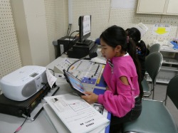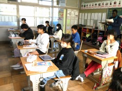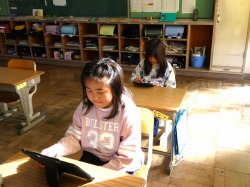 3年生は、社会科の授業でテストをしました。テストが終わった児童は、タブレット端末を活用して、ドリル学習をしました。