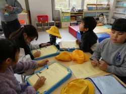 1年生は、国語科の授業で、「じどう車くらべ」を学習しました。教科書に段落番号をうっていました。