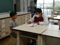 授業後に教育相談を行いました。担任の先生とじっくりお話をしていました。待っている児童は、宿題やテスト勉強などをして、静かに過ごしていました。