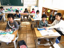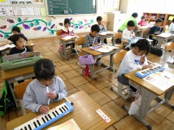 1年生は、音楽科の授業で、「すずめがちゅん」を鍵盤ハーモニカで演奏しました。何回も練習しているうちに、猫の手やタンギングができるようになり、とても上手に吹けるようになりました。